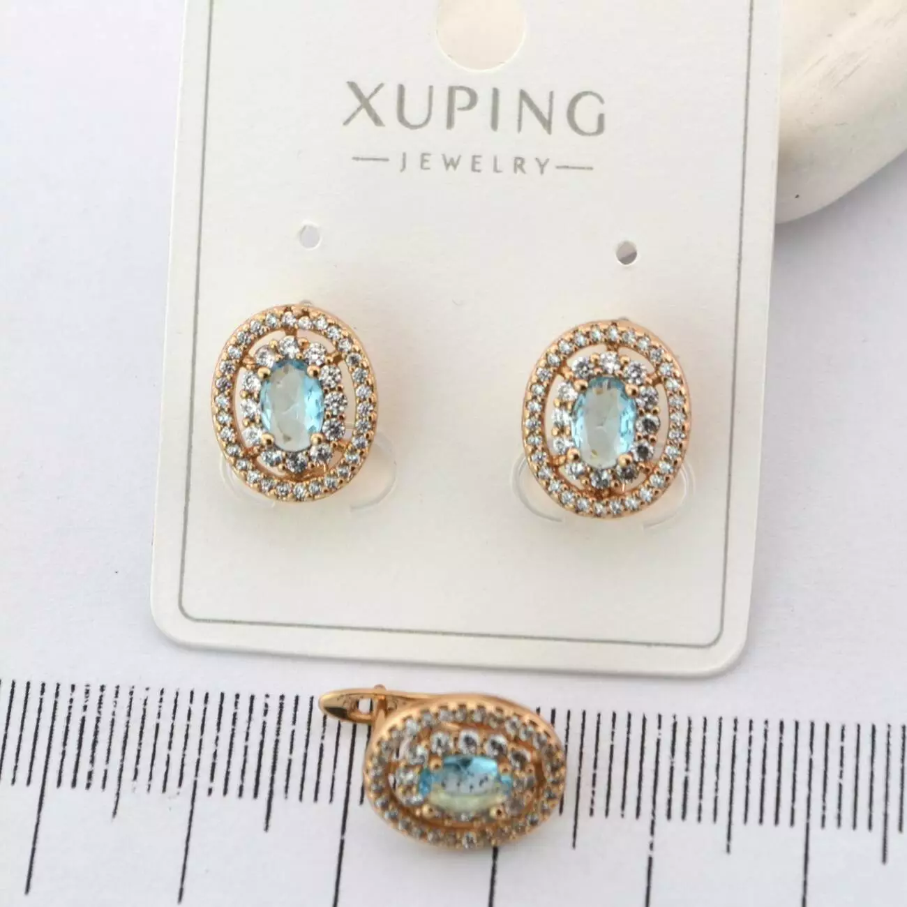 Сережки Xuping з блакитним каменем з медичного золота позолота 18К (01886)