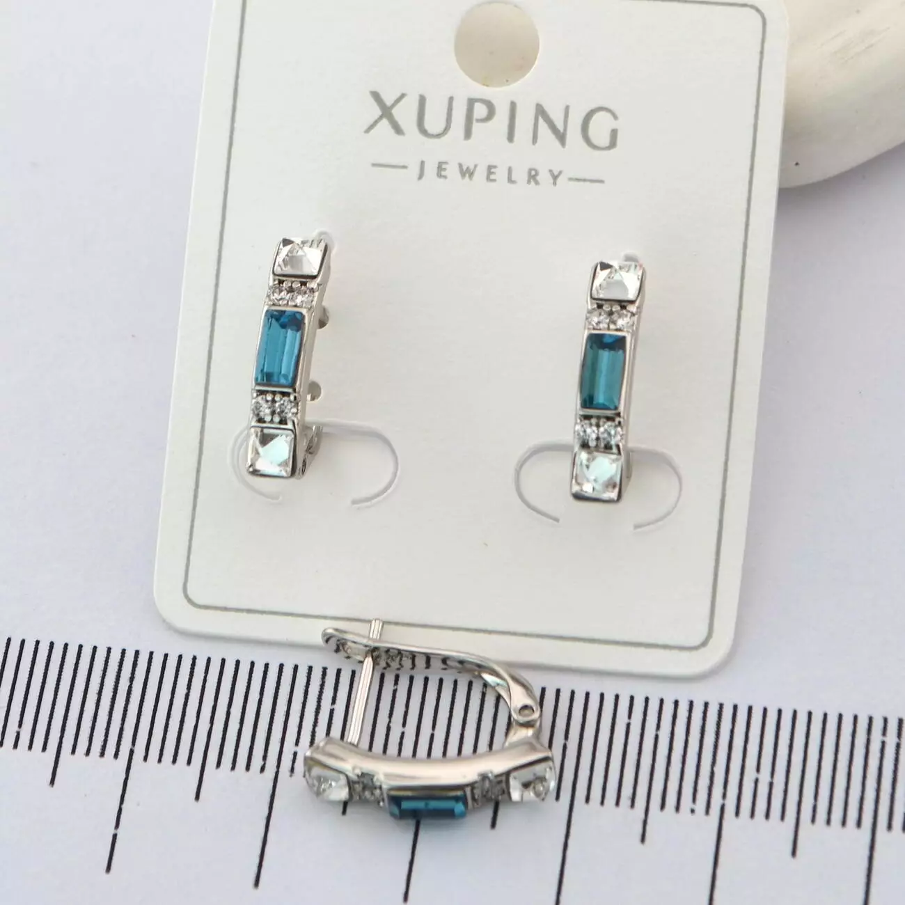 Сережки Xuping з блакитним каменем з медичного золота родій