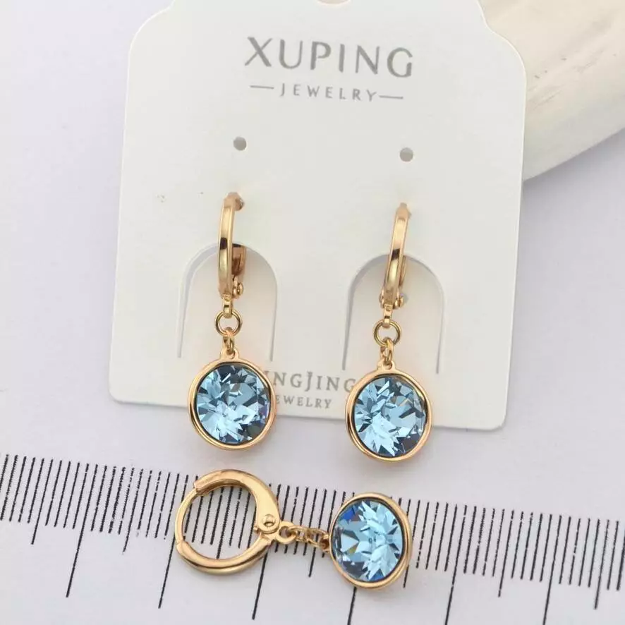 Сережки Xuping з блакитним камінцем з медичного золота позолота 18К (01624)
