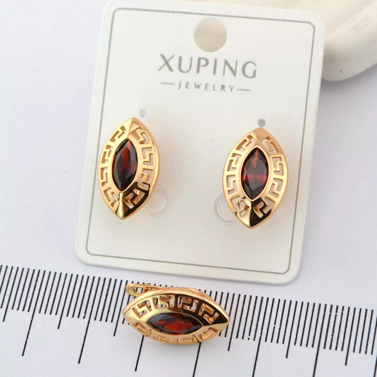 Сережки Xuping з червоним каменем з медичного золота позолота 18К