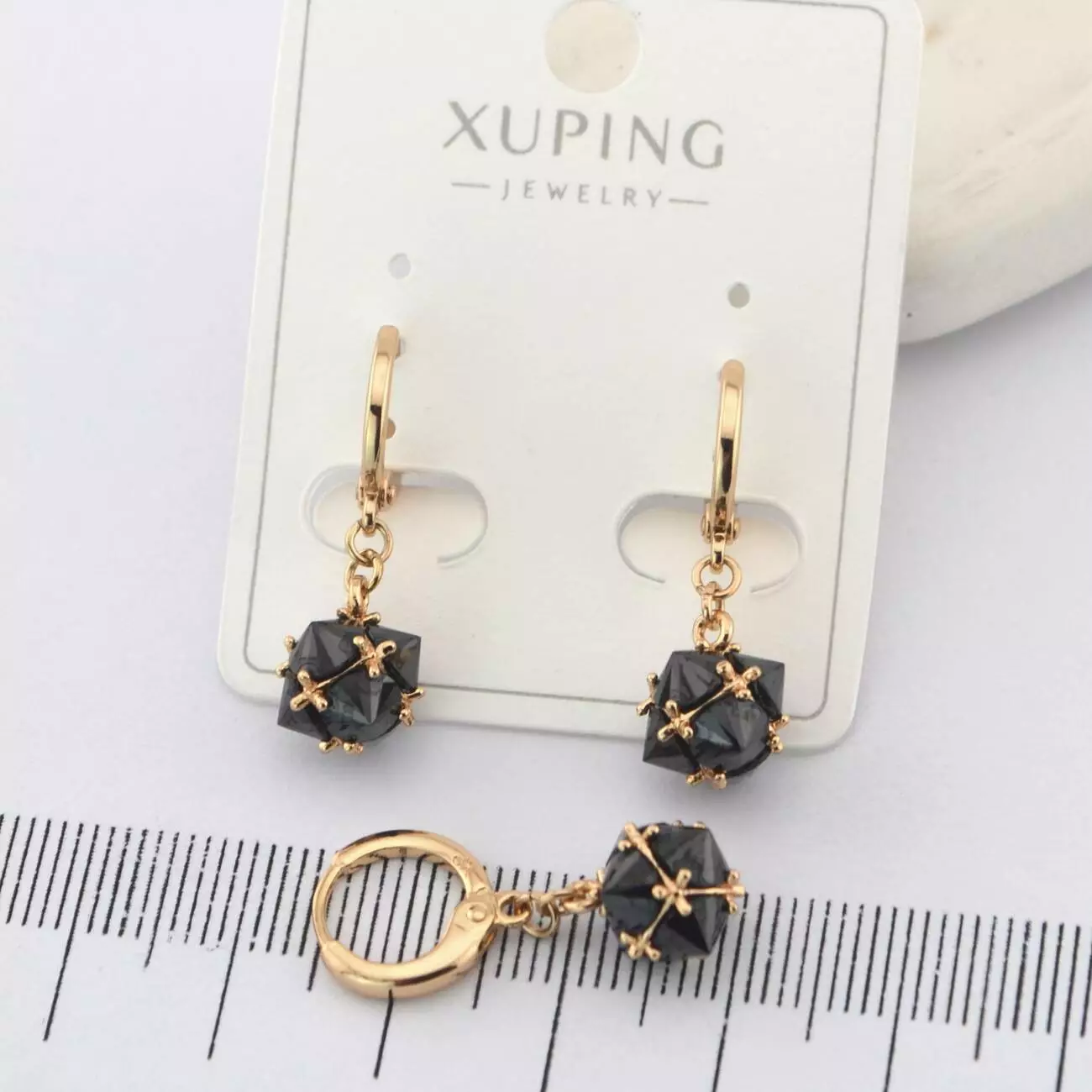 Сережки Xuping з чорним каменем з медичного золота позолота 18К (01709)