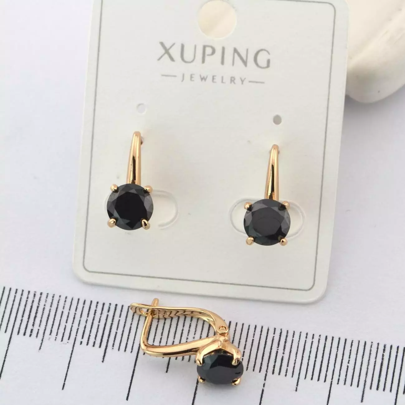 Сережки Xuping з чорним каменем з медичного золота позолота 18К (01746)