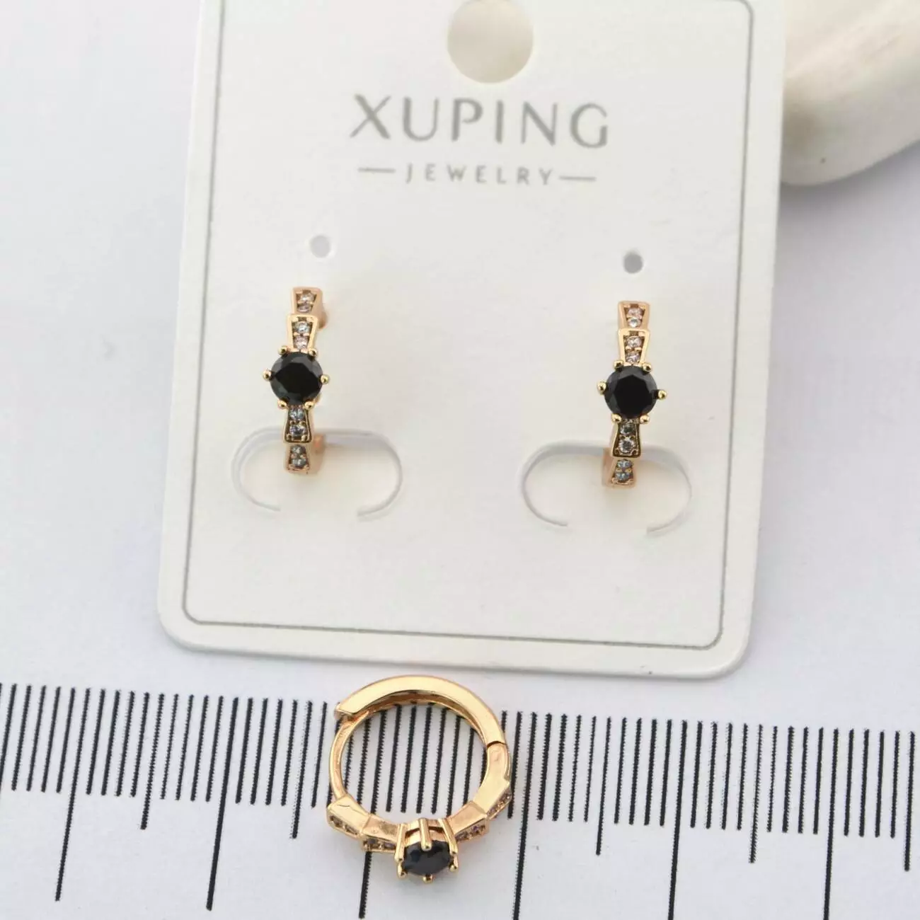Сережки Xuping з чорним каменем з медичного золота позолота 18К (02051)