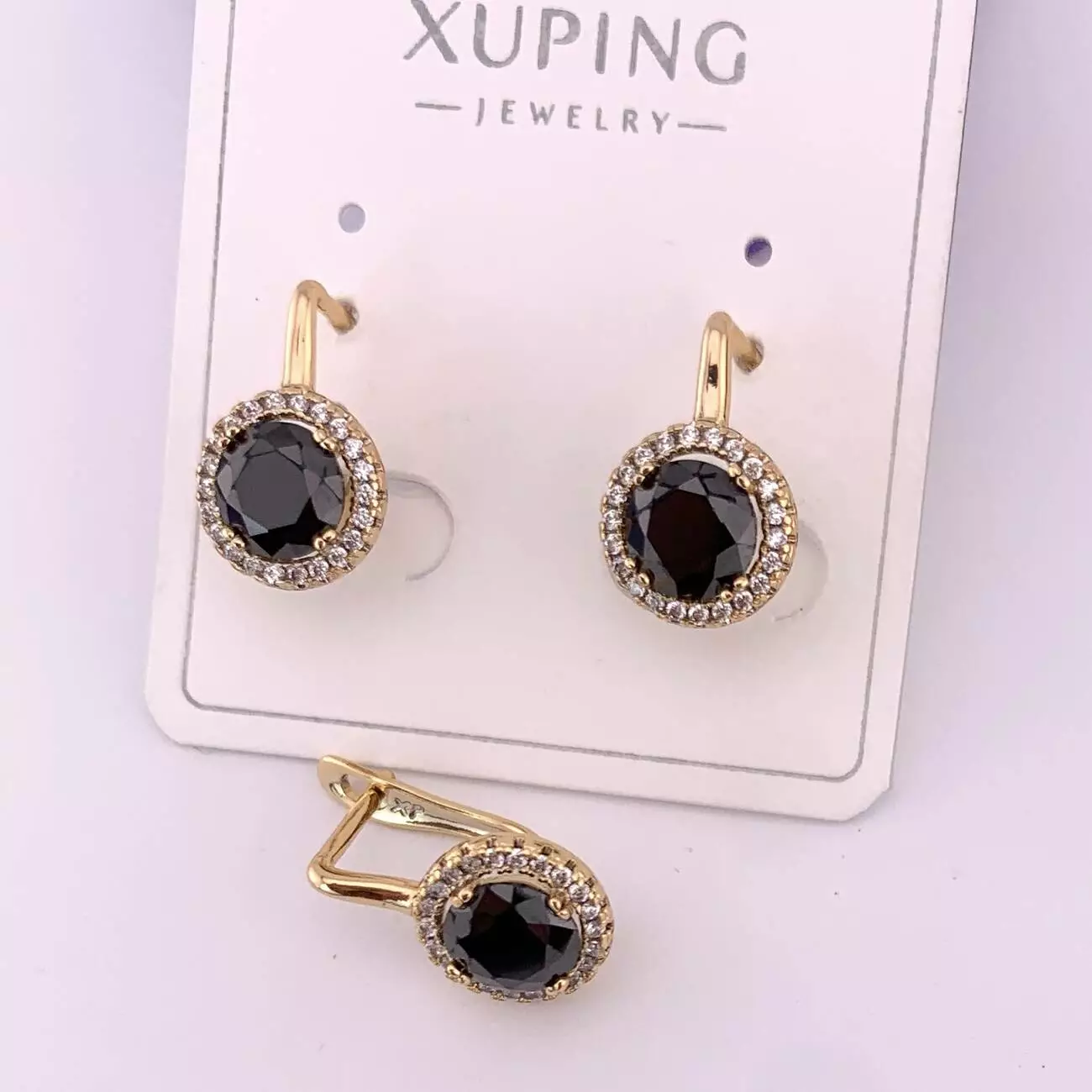 Сережки Xuping з чорним каменем з медичного золота позолота 18К