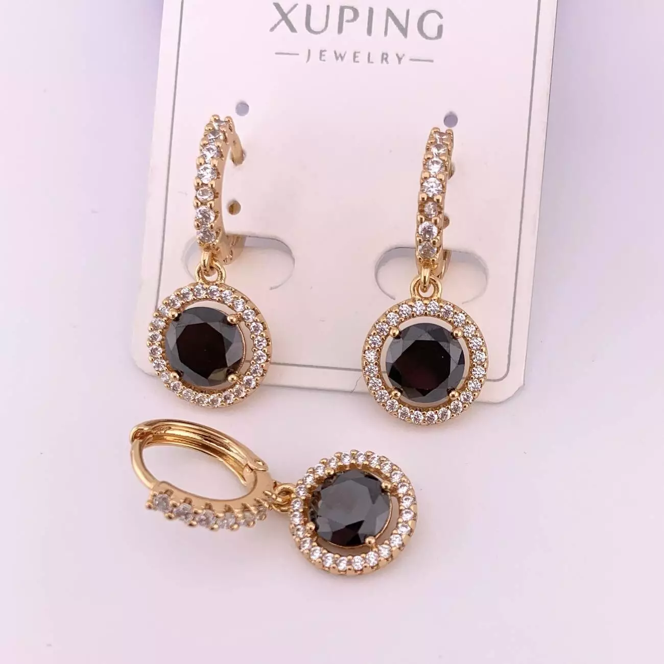 Сережки Xuping з чорним каменем з медичного золота позолота 18К