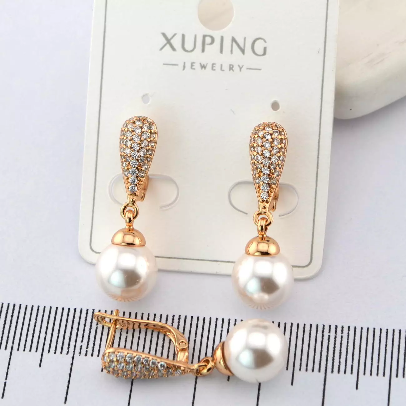 Сережки Xuping з перлиною 10 мм з медичного золота позолота 18К