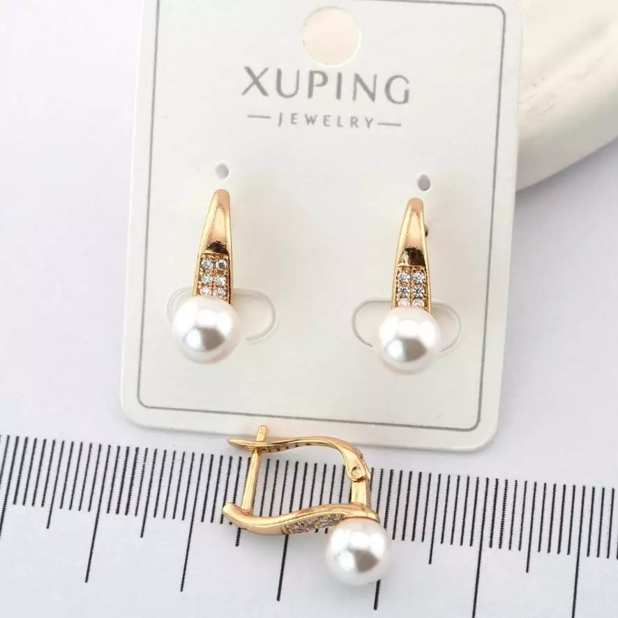 Сережки Xuping з перлиною 7 мм з медичного золота позолота 18К
