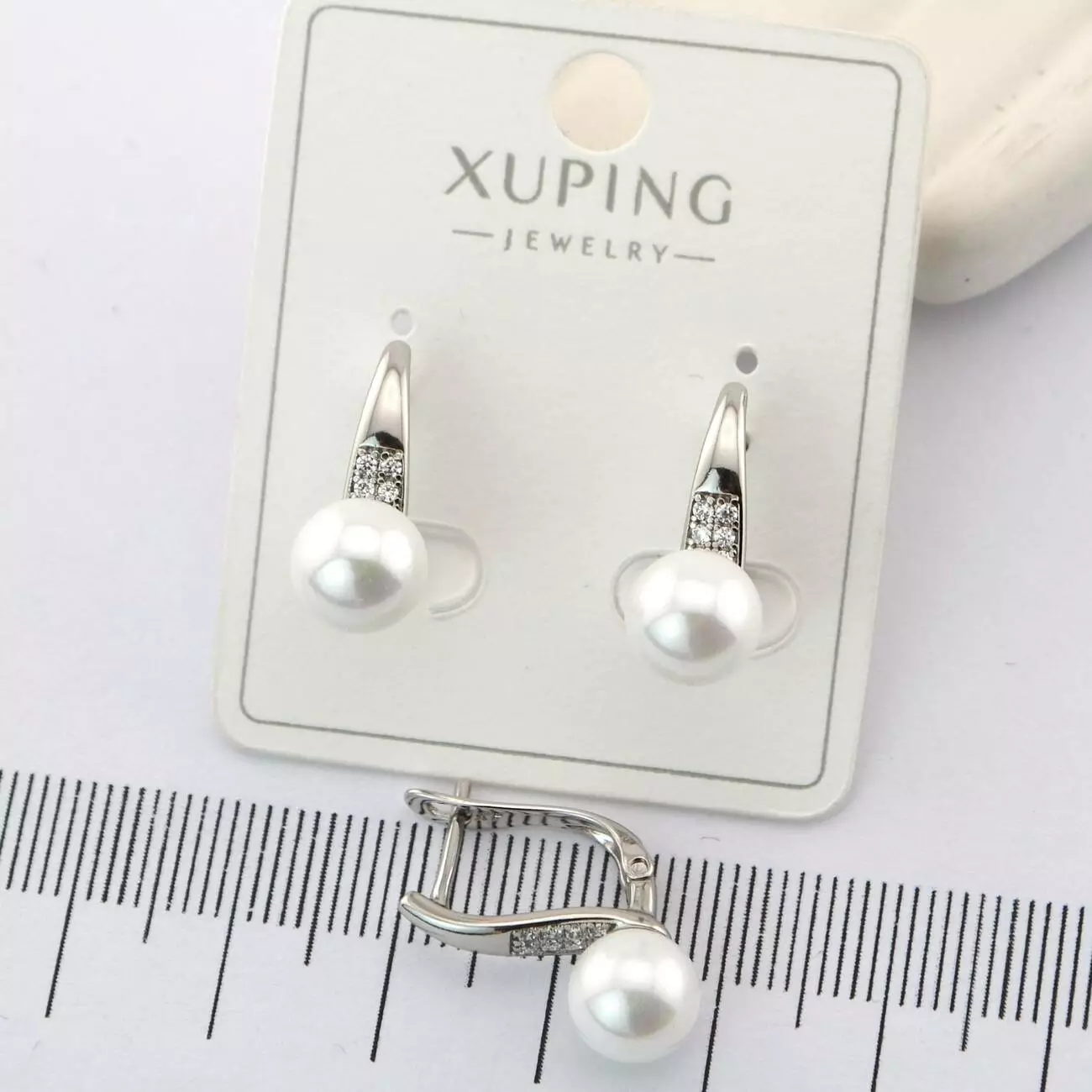 Сережки Xuping з перлиною 7 мм з медичного золота родій