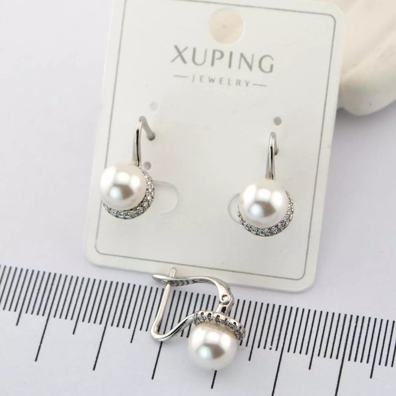 Сережки Xuping з перлиною 8 мм з медичного золота родій