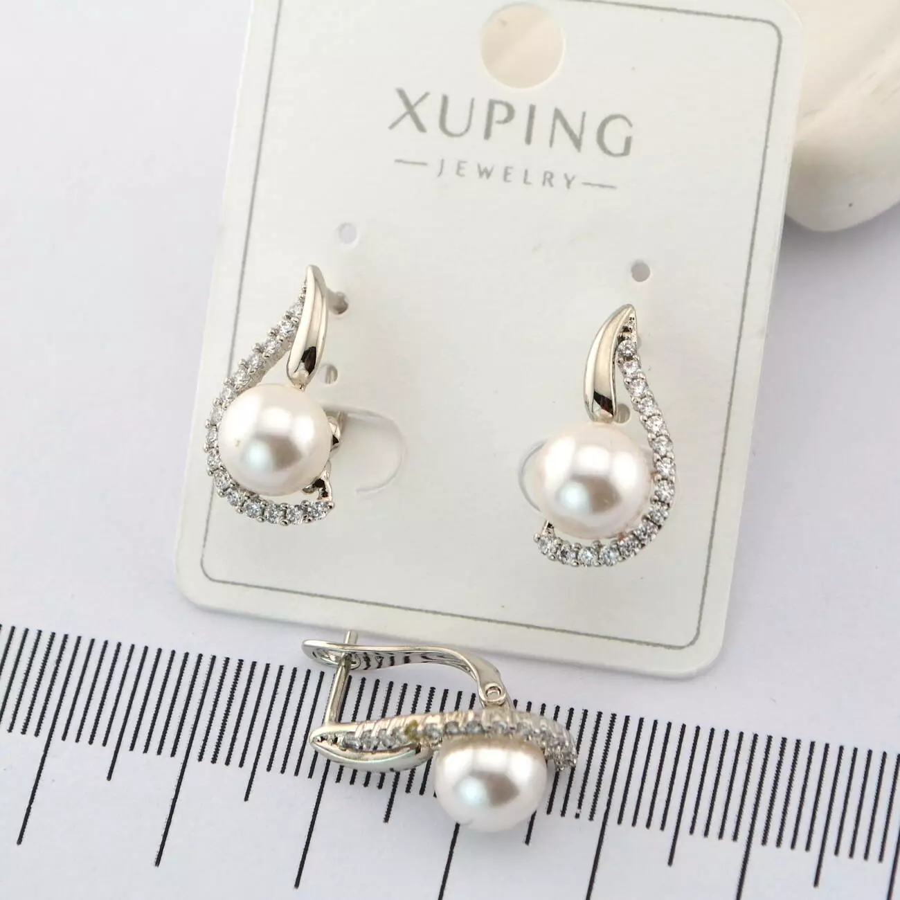 Сережки Xuping з перлиною 8 мм з медичного золота родій (00069)