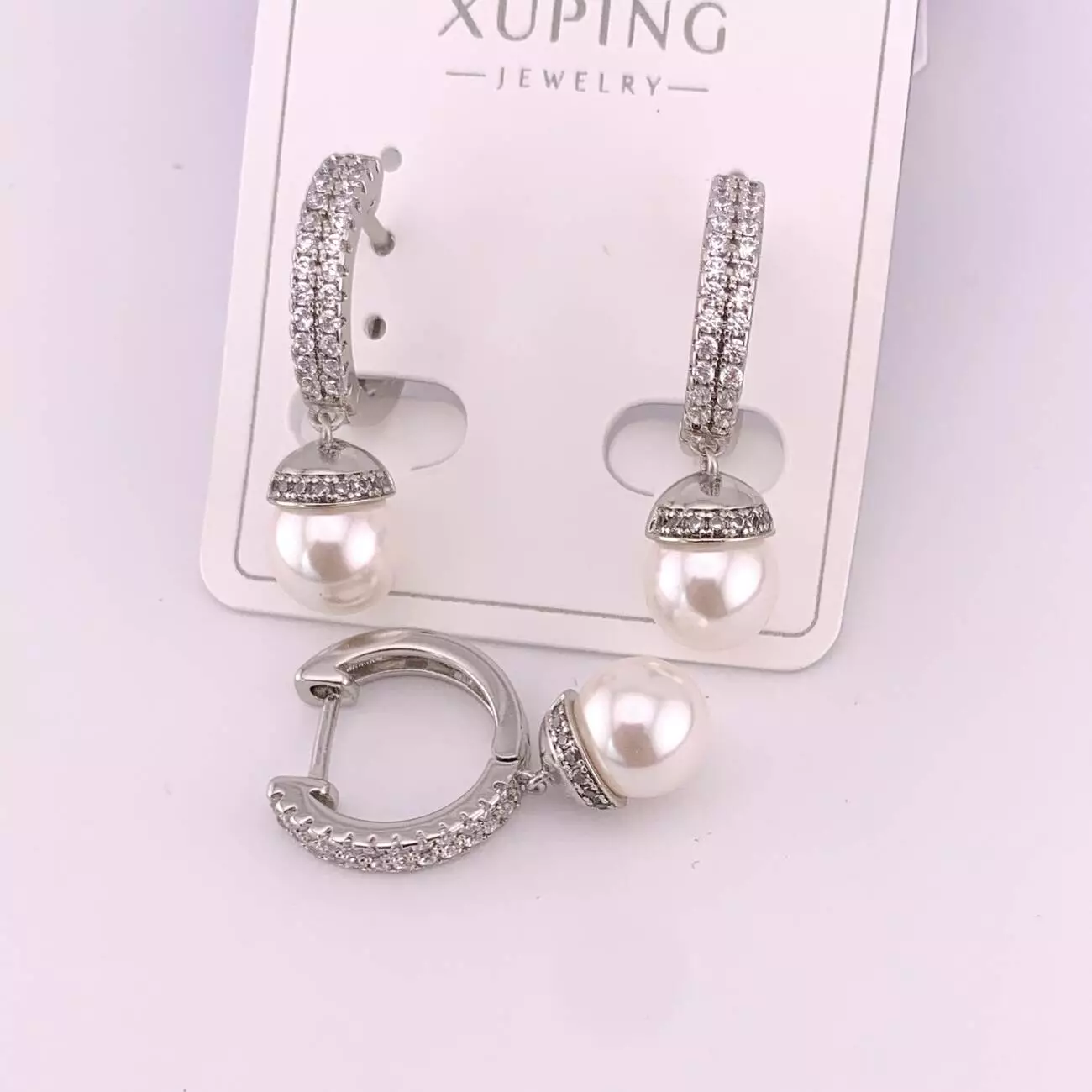 Сережки Xuping з перлиною 8 мм з медичного золота родій