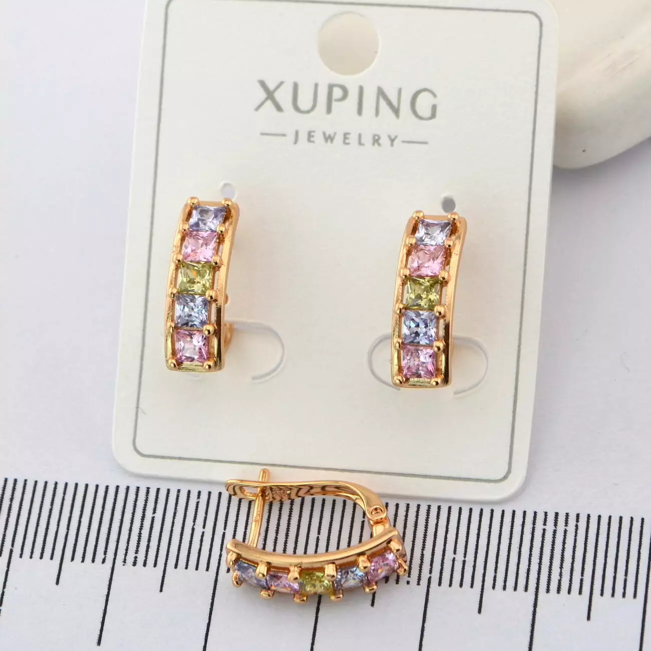Сережки Xuping з різнокольоровими каменями з медичного золота позолота 18К