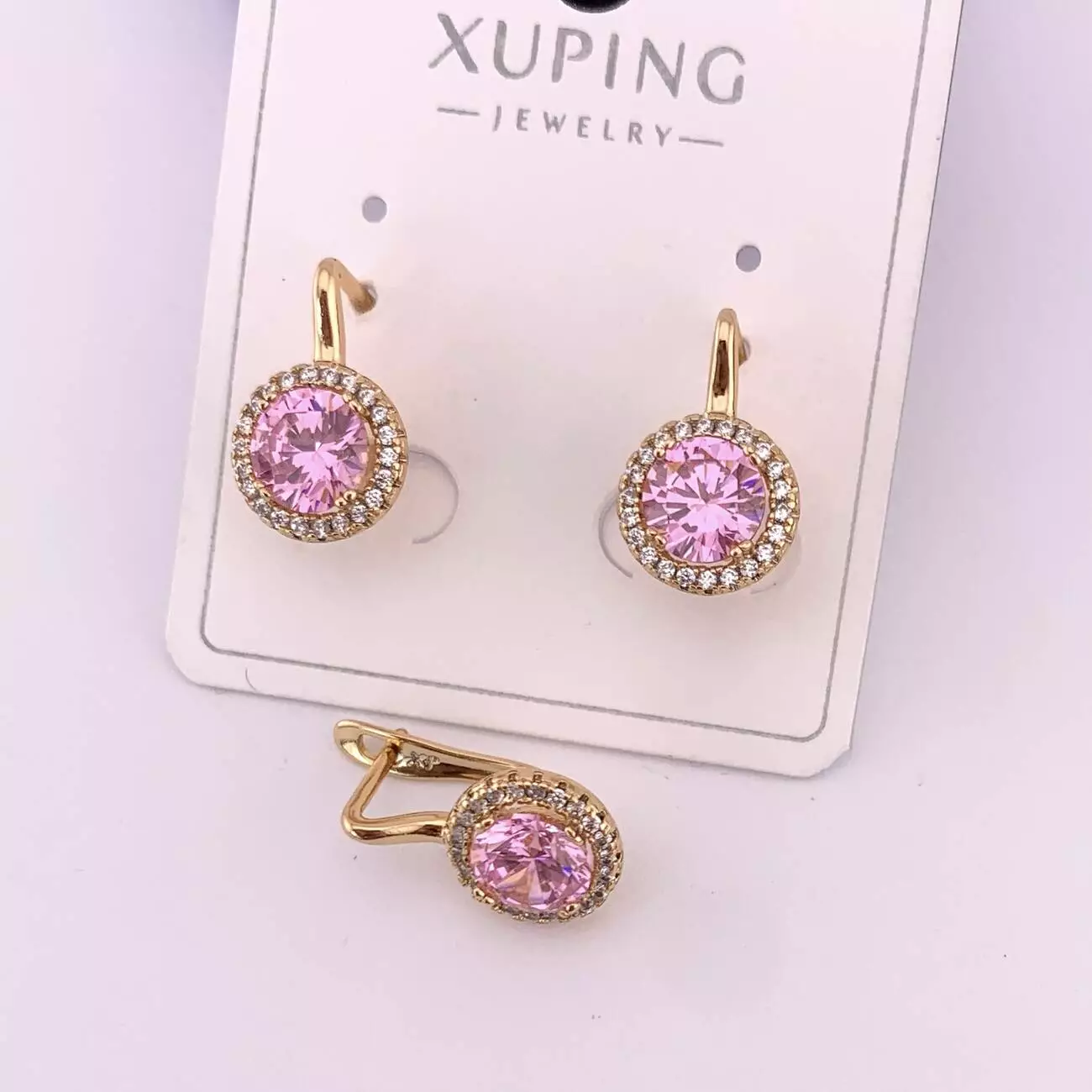 Сережки Xuping з рожевим каменем з медичного золота позолота 18К