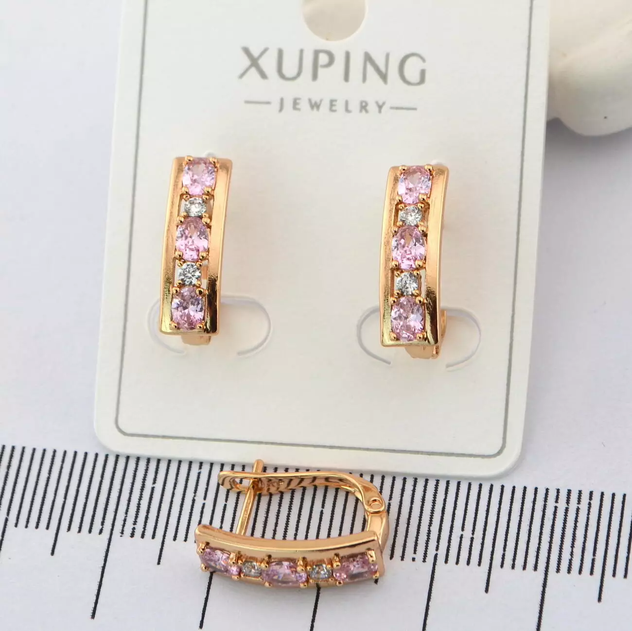 Сережки Xuping з рожевим каменем з медичного золота позолота 18К