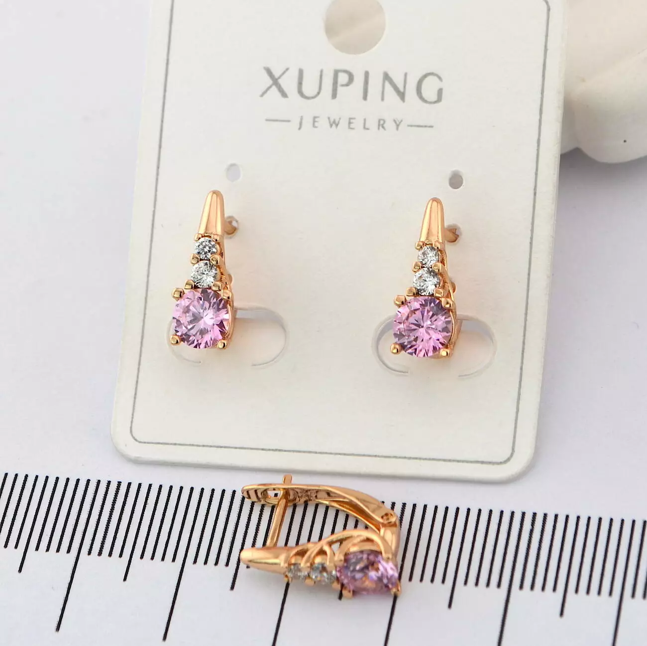 Сережки Xuping з рожевим каменем з медичного золота позолота 18К