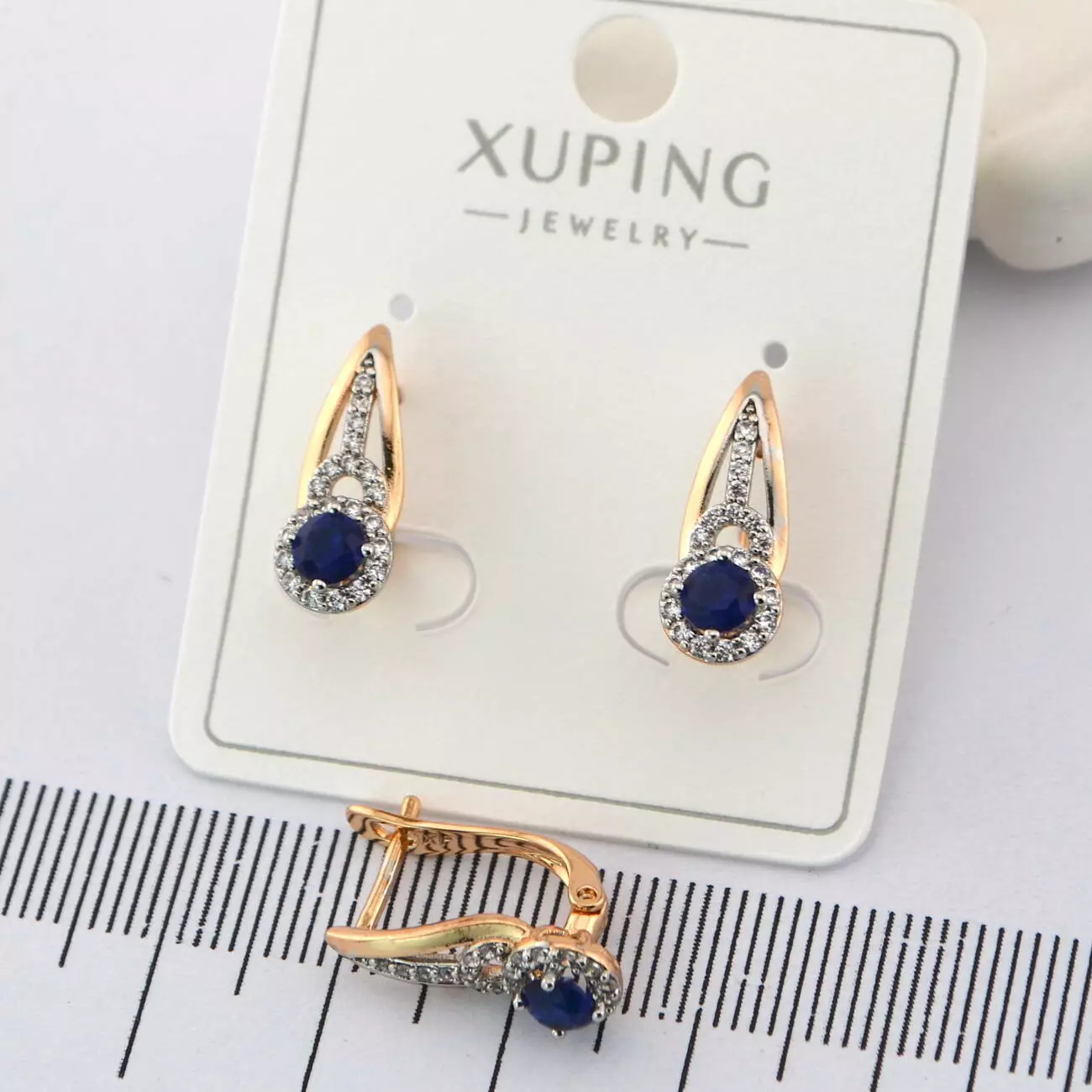 Сережки Xuping з синім камінцем з медичного золота позолота 18К+родій