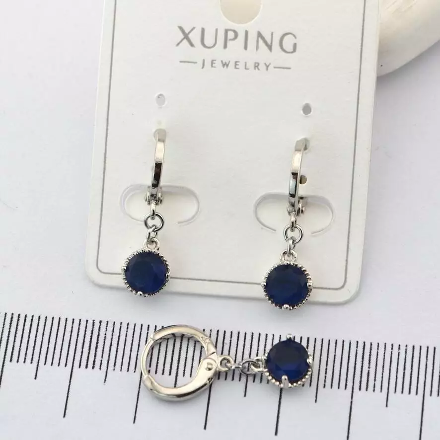 Сережки Xuping з синім камінцем з медичного золота родій (01507)