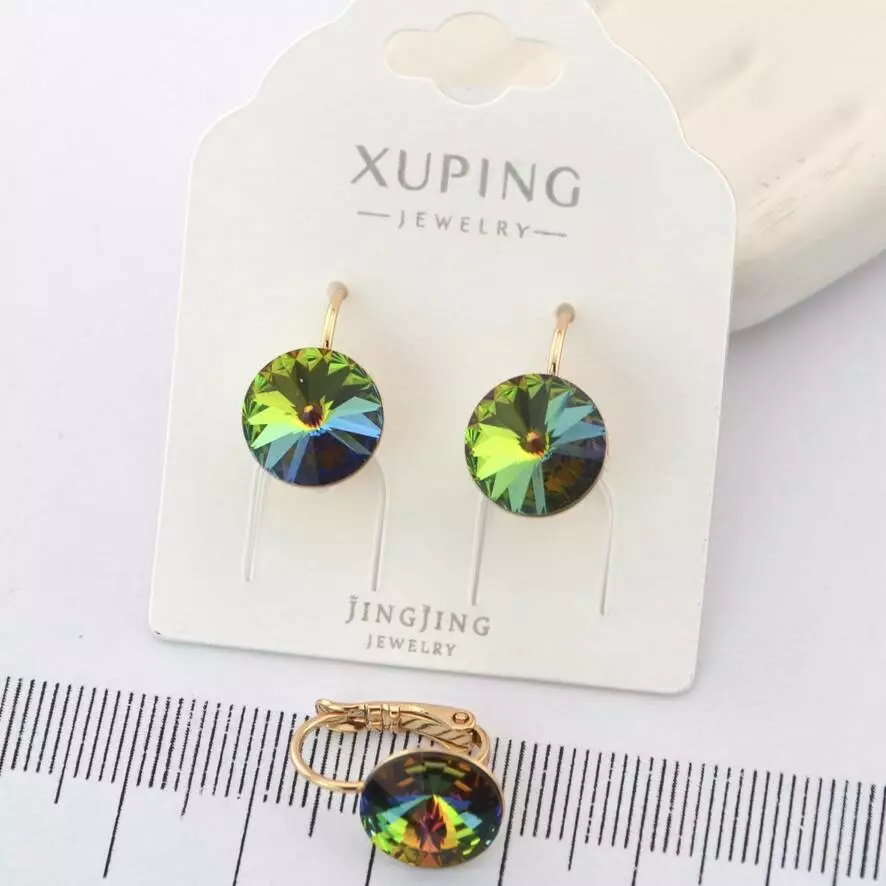 Сережки Xuping з зеленим камінцем з медичного золота позолота 18К (01621)