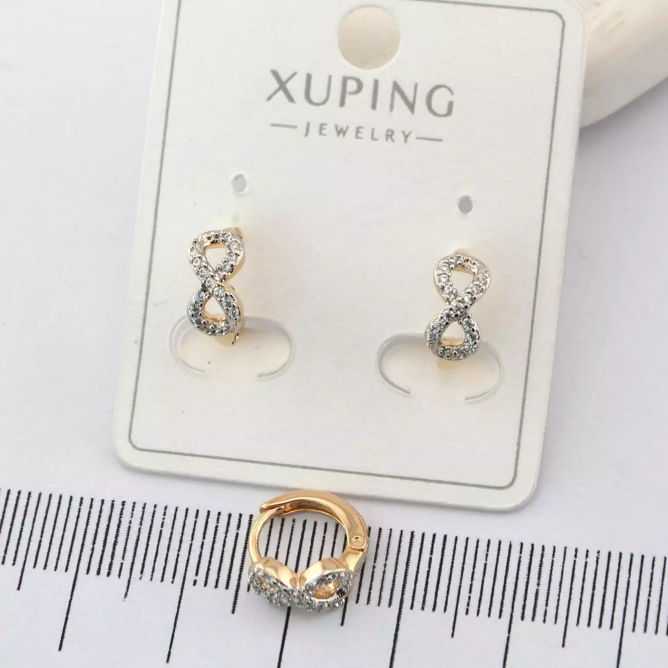 Сережки Xuping знак безкінечності з медичного золота позолота 18К+родій (01484)